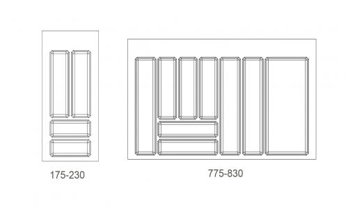 Onko sinulla kapeita laatikoita? Ei hätää! Tarjoamme aterinlaatikkoja, jotka sopivat jopa 175 mm leveisiin laatikoihin – täydellisiä pienille laatikoille keittiössä. Meillä on myös malleja, jotka sopivat todella leveisiin laatikoihin, jopa 830 mm leveisiin. Ei väliä koosta, autamme sinua löytämään oikean ratkaisun.