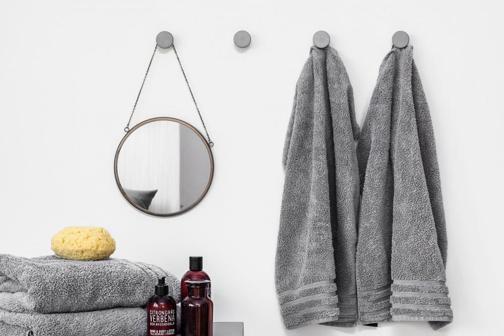 Klassinen harmaa sementtiväri sopii erinomaisesti esimerkiksi messingin ja lämpimien metallien kanssa sisustuksessa. Messingin sekoitus, vaalea betonitaso ja sementtikoukut luovat kauniin ilmeen niin kylpyhuoneeseen kuin ulkokeittiöön tai kesämökille.