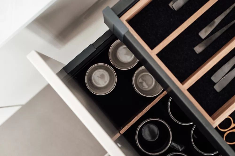 Joustava metallilaatikkojärjestelmä keittiön laatikoihin ja kylpyhuoneen komeroihin. Yhdistä osia itse luodaksesi ainutlaatuinen aterinsäilytys.