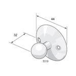 Toiminnallinen nuppi, jonka design on 1930–1950-luvuilta. Nuppi asennetaan edestä ja varusteessa on nikkelöity pinta.