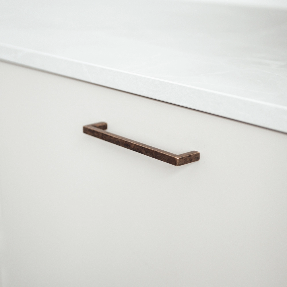 Klassinen keittiön vetimet suoran mallin kanssa, jossa on pyöristetty alapuoli mukavaa otetta varten.