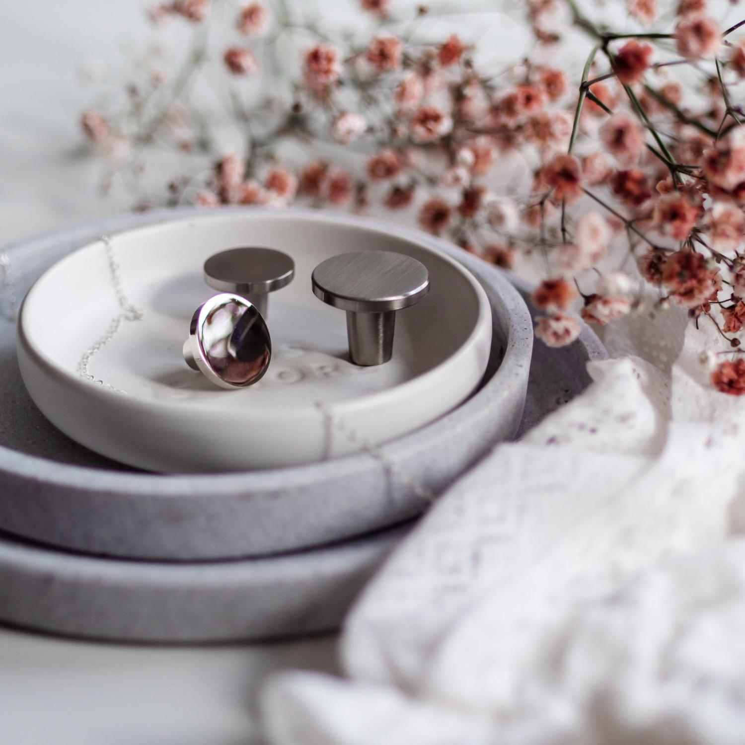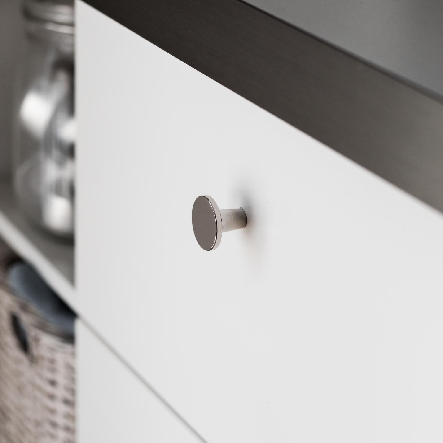 Kiiltävä nikkeli nuppi moderniin ja tyylikkääseen tunnelmaan.