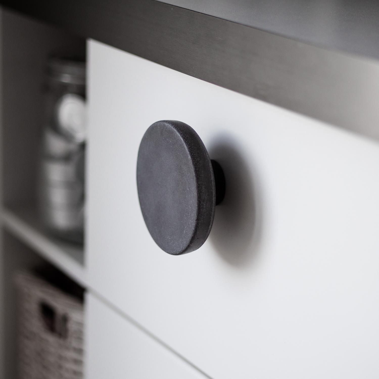Uniikki sementtinappi, joka on valmistettu modernilla ja tyylikkäällä muotoilulla. Yhdistettynä karkean materiaalin kanssa se sopii moniin ympäristöihin ja tyyleihin. Jos sinulla on teollinen keittiö tai betoninen työtaso, nämä sementtinapit voivat olla täydellinen yksityiskohta, mutta ne sopivat myös hyvin lipastoon tai kylpyhuonekaappiin. Voit myös asentaa napit seinälle ja käyttää niitä koukkuina, kokeile kuinka voit luoda täysin oman ilmeen yhdistämällä eri kokoja ja viimeistelyjä!