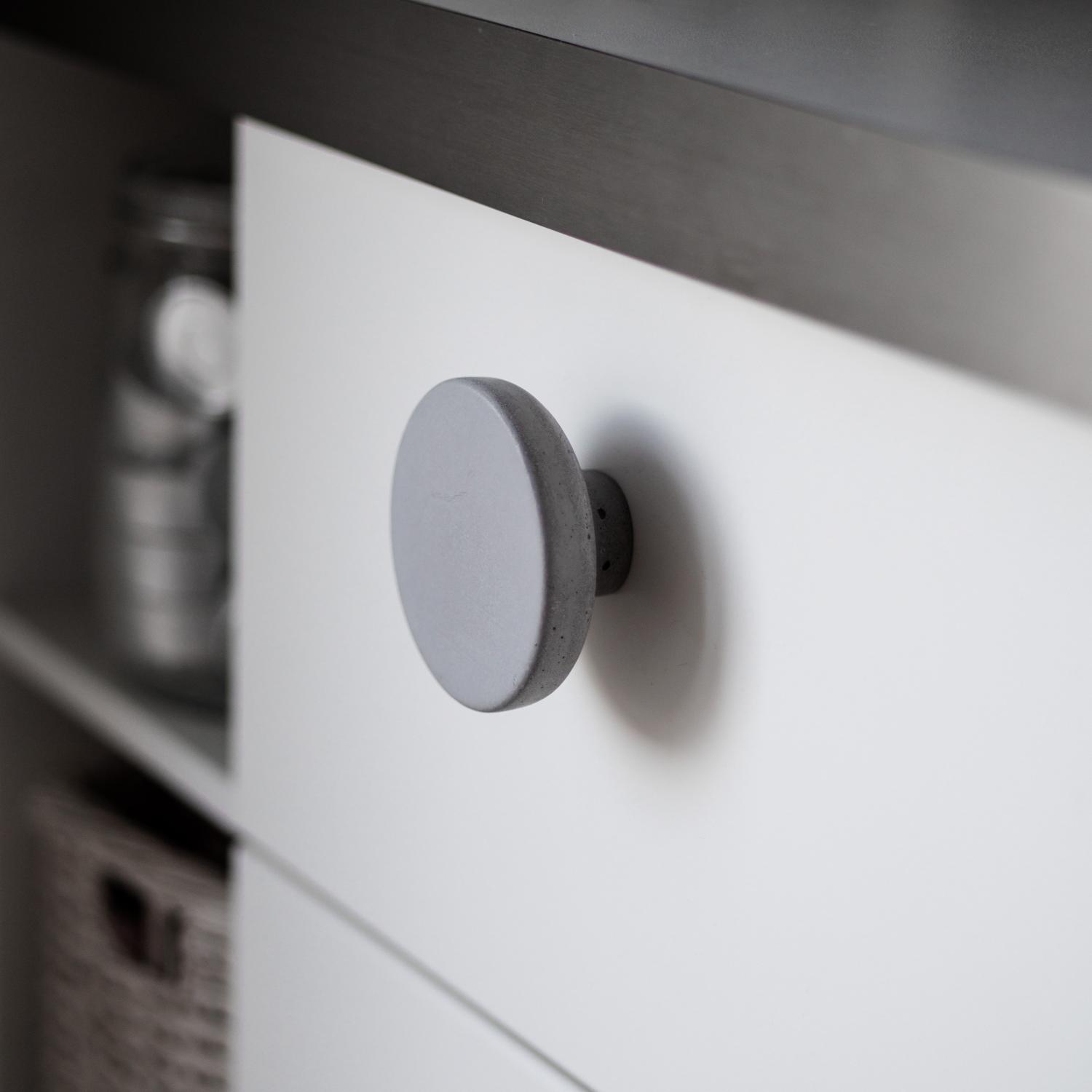 Uniikki sementtiknopp, joka on valmistettu modernissa ja tyylikkäässä muotoilussa. Yhdistettynä karkeaan ja karheaan materiaaliin se sopii moniin ympäristöihin ja tyyleihin. Jos sinulla on teollinen keittiö tai betoninen työtaso, nämä sementtikoukut voivat olla täydellinen yksityiskohta, mutta ne sopivat tietenkin myös hyvin lipastoon tai kylpyhuonekaappiin. Voit myös asentaa koukut seinälle ja käyttää niitä nauloina; koe, kuinka voit luoda oman ilmeesi yhdistämällä erilaisia kokoja ja viimeistelyjä!