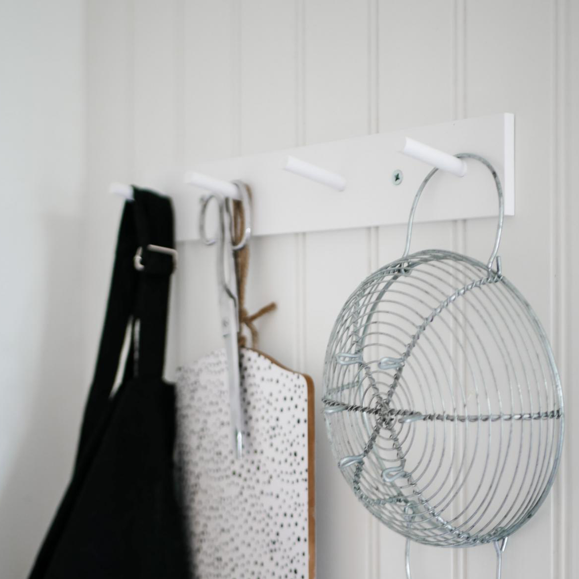 Valkoinen koukku, joka sopii sekä kylpyhuoneeseen että keittiöön sekä eteiseen. Koukku on klassisella muotoilulla, jossa on suorat reunat, ja se sopii sekä moderneihin keittiöihin, maalaistalon kesähuoneisiin että teolliseen sisustustyyliin.