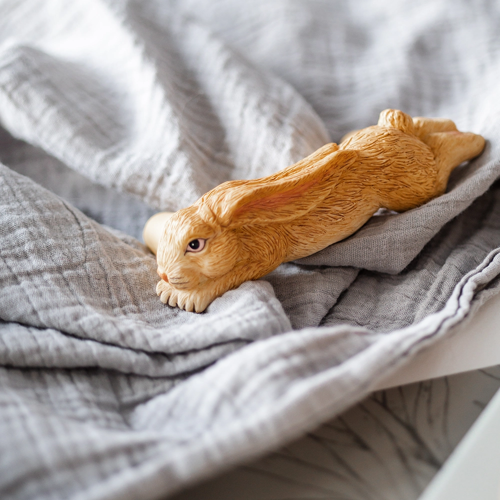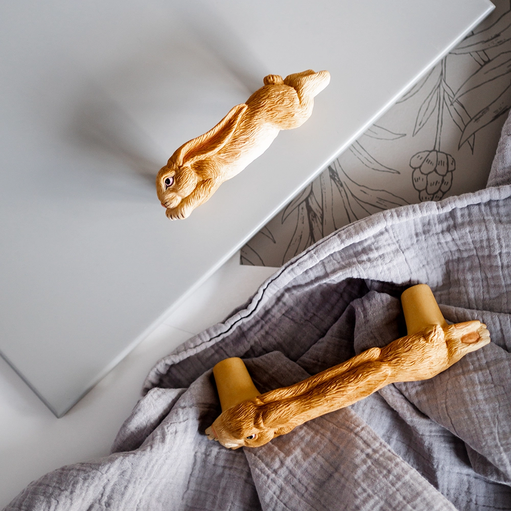 vetimet suloinen kani, joka on hieno yksityiskohta komodille tai vaatekaapille.